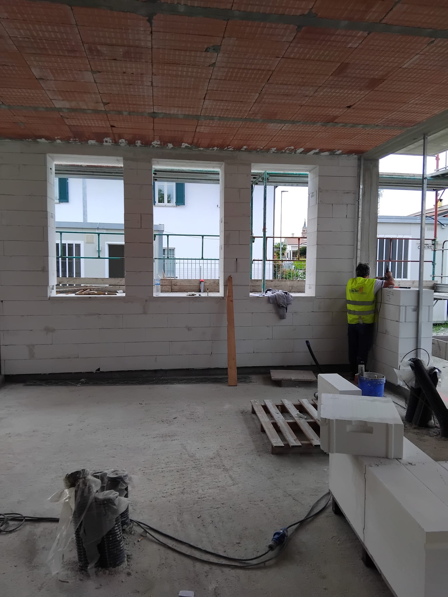 Per l'involucro esterno, invece, la scelta è caduta sui blocchi Ytong Climagold: una muratura monoblocco, in questo caso scelta nella sua versione da 45 cm, pensata per garantire prestazioni termiche elevate con un unico strato di materiale, senza ricorrere a strati aggiuntivi di isolante.