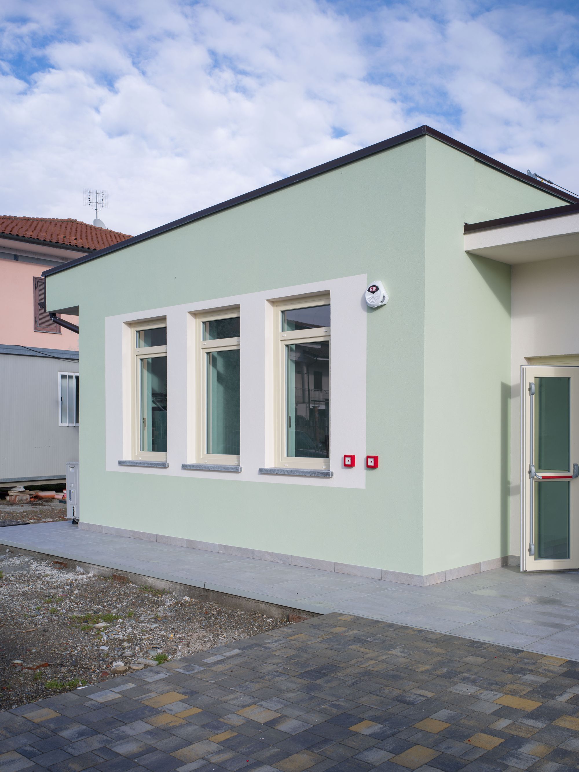 A Moretta, piccolo comune in provincia di Cuneo immerso nella pianura, ha aperto le sue porte un nuovo edificio scolastico destinato all'infanzia: un asilo che, già in fase di progettazione, ha fatto dell'efficienza costruttiva e del comfort ambientale i suoi principi cardine. Un progetto di un solo piano fuori terra, apparentemente semplice nella sua volumetria compatta - 330 mq di superficie per 1.500 mc di volume - ma che nasconde, nella scelta dei materiali, una riflessione tecnica tutt'altro che banale.