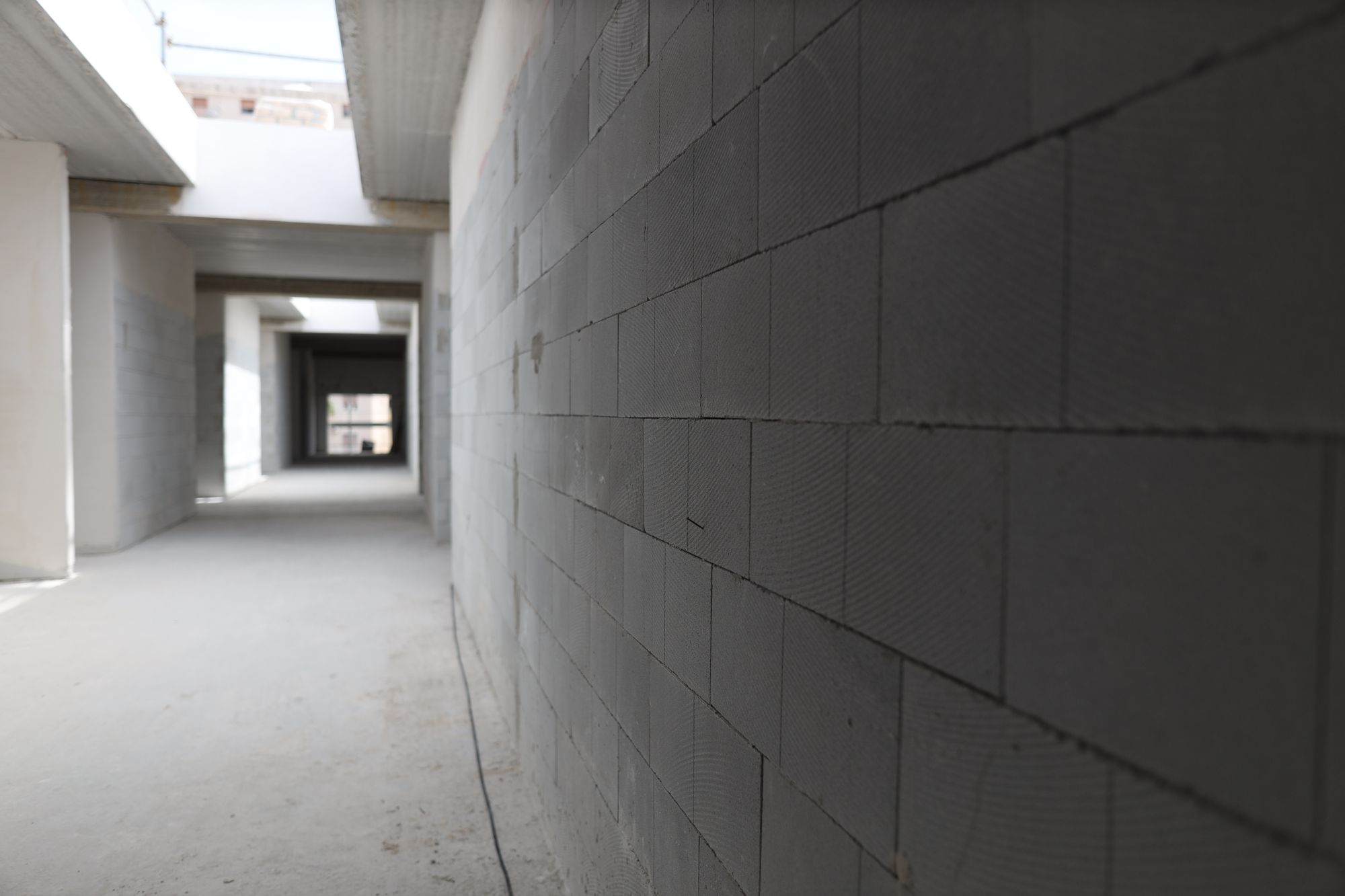 Per la suddivisione degli spazi interni, la scelta è ricaduta sui blocchi sottili Ytong Y-PRO, che offrono una combinazione ideale di leggerezza strutturale, rapidità di posa e ottime prestazioni acustiche. Questa soluzione garantisce flessibilità distributiva degli ambienti e un eccellente isolamento tra le diverse aule, aspetto fondamentale per assicurare il comfort acustico necessario alle attività didattiche.